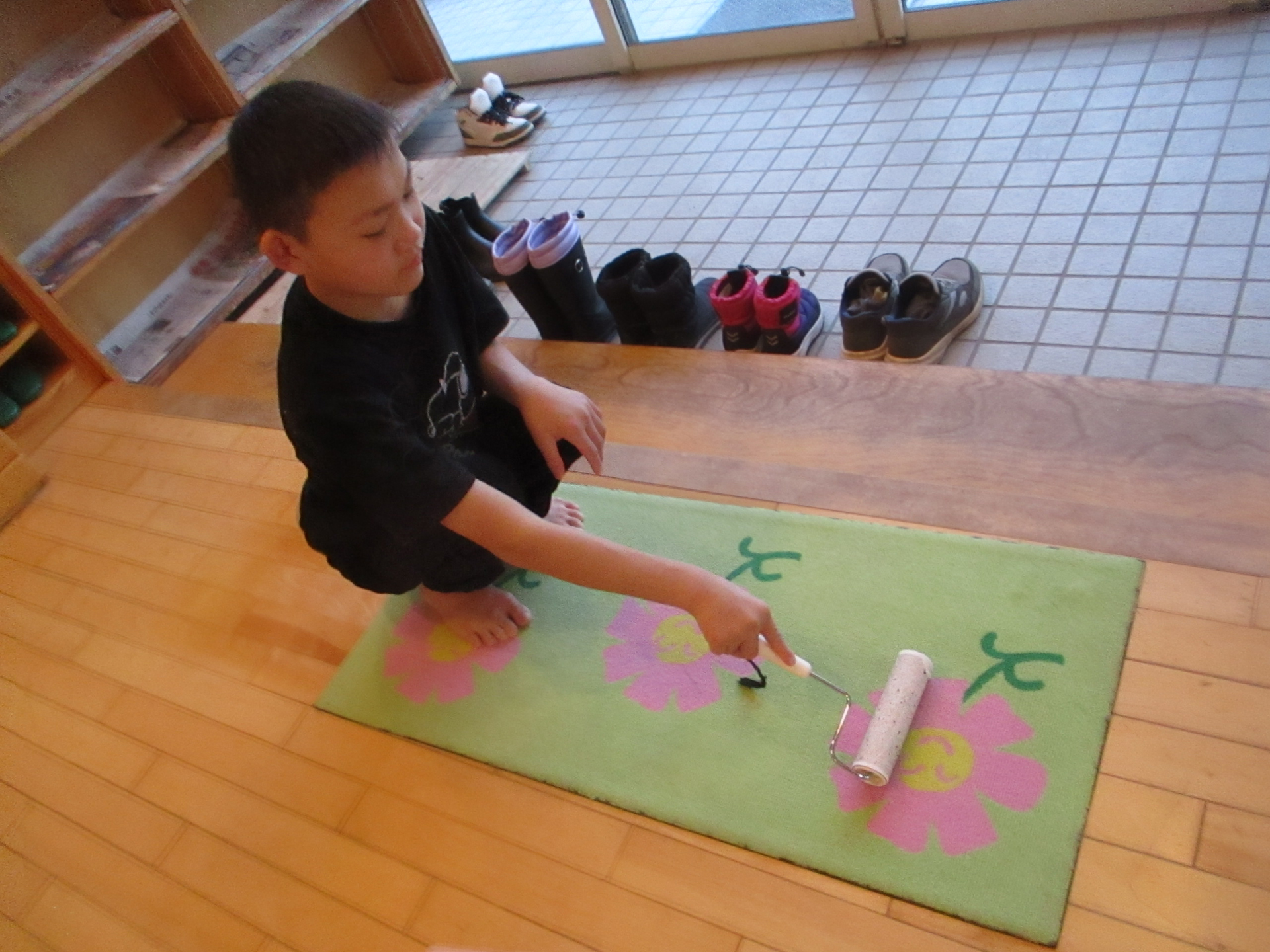 雑巾掛けをしてから役割分担をして掃除します。